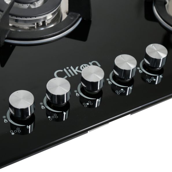 The Clikon 5 Burner Stainless Steel Glass Top Gas Hob combines elegance, durability, and performance to enhance your kitchen experience. Featuring a premium stainless steel frame with a sleek glass top, this hob adds a modern touch to any kitchen. Its 5 high-efficiency burners, including a powerful central wok burner, provide precise heat control for versatile cooking needs, from simmering sauces to stir-frying. The tempered glass top is easy to clean and resistant to scratches and stains, ensuring lasting beauty. Equipped with ergonomic knobs and a flame failure safety device, it ensures convenience and safety. Perfect for families or cooking enthusiasts, this gas hob delivers efficiency and style in one innovative design.
