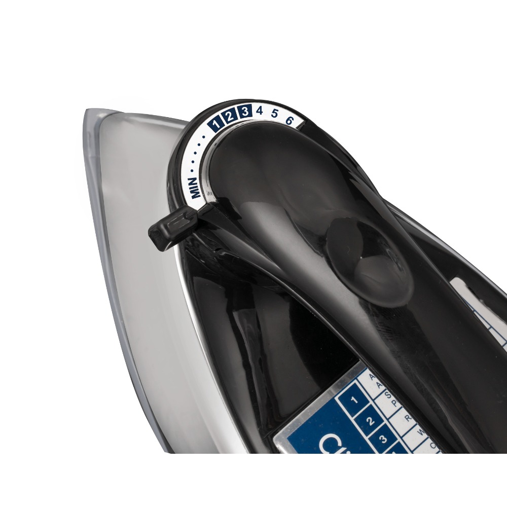 The Clickon Dry Iron Box Equipped with a Teflon-coated soleplate, it ensures smooth gliding over fabrics, reducing friction and preventing sticking.
